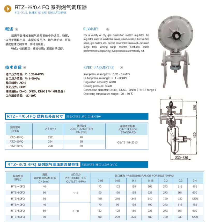 RTZ-0.4FQ系列燃?xì)庹{(diào)壓器