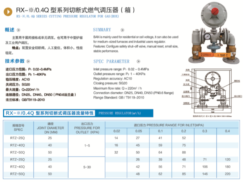 RTZ-0.4Q型系列切斷式燃氣調(diào)壓器(箱)
